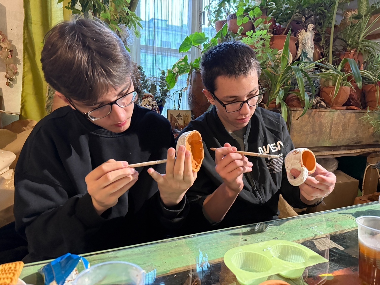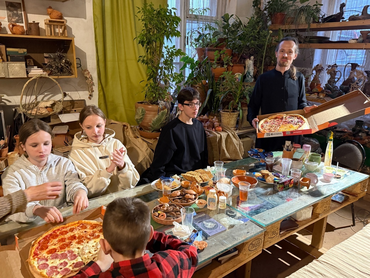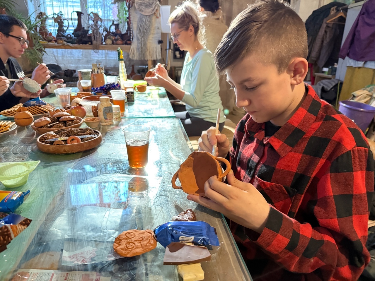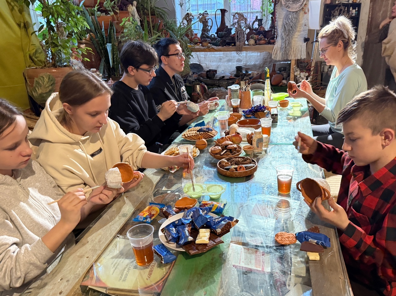 2 мая еженедельная встреча подростков Крестовоздвиженского храма г. Коломна снова прошла в особом формате - ребята снова посетили гончарную мастерскую и расписали свои работы, которые сделали прошлый раз. Также для ребят заказали пиццу и сладости.