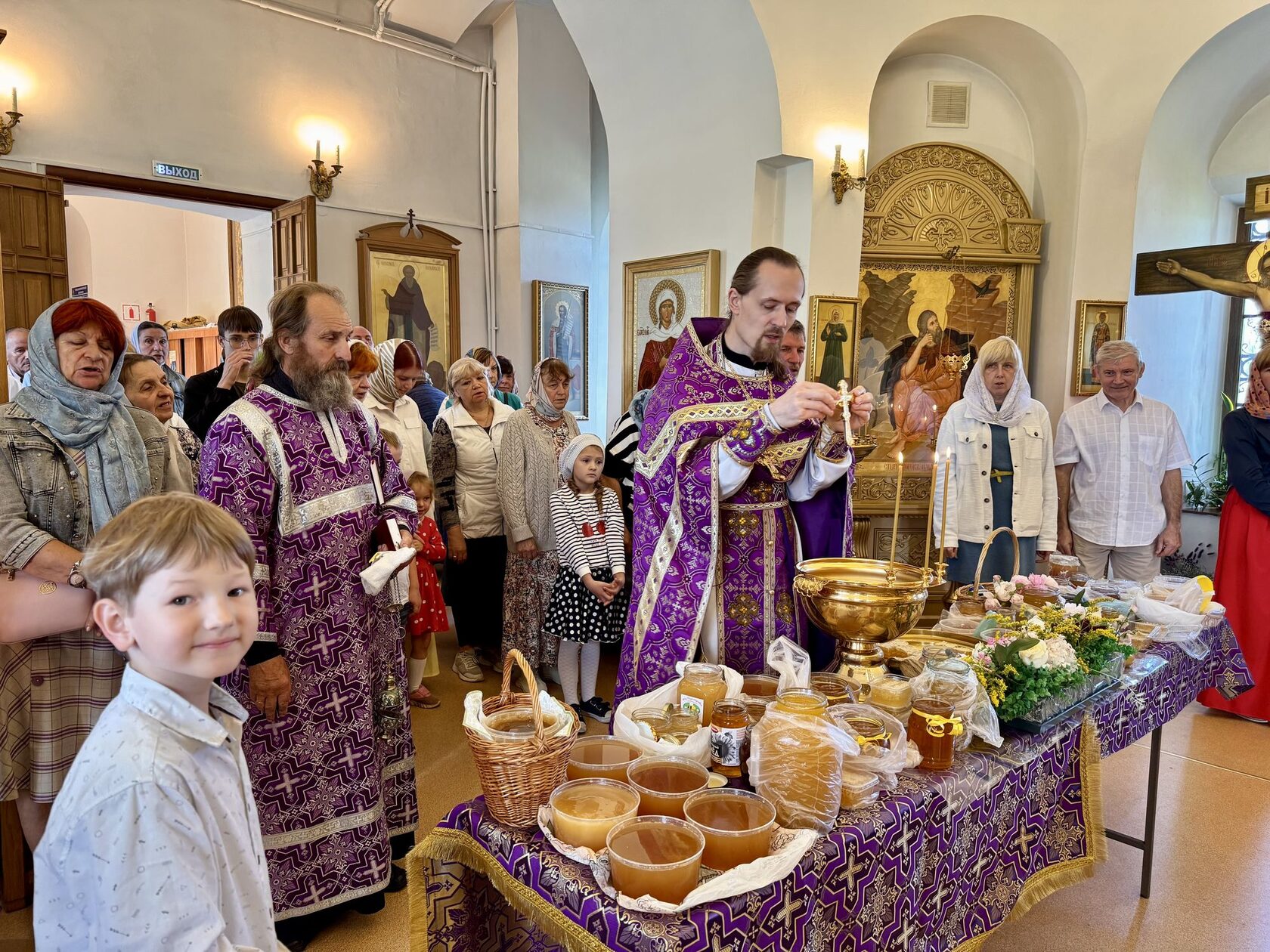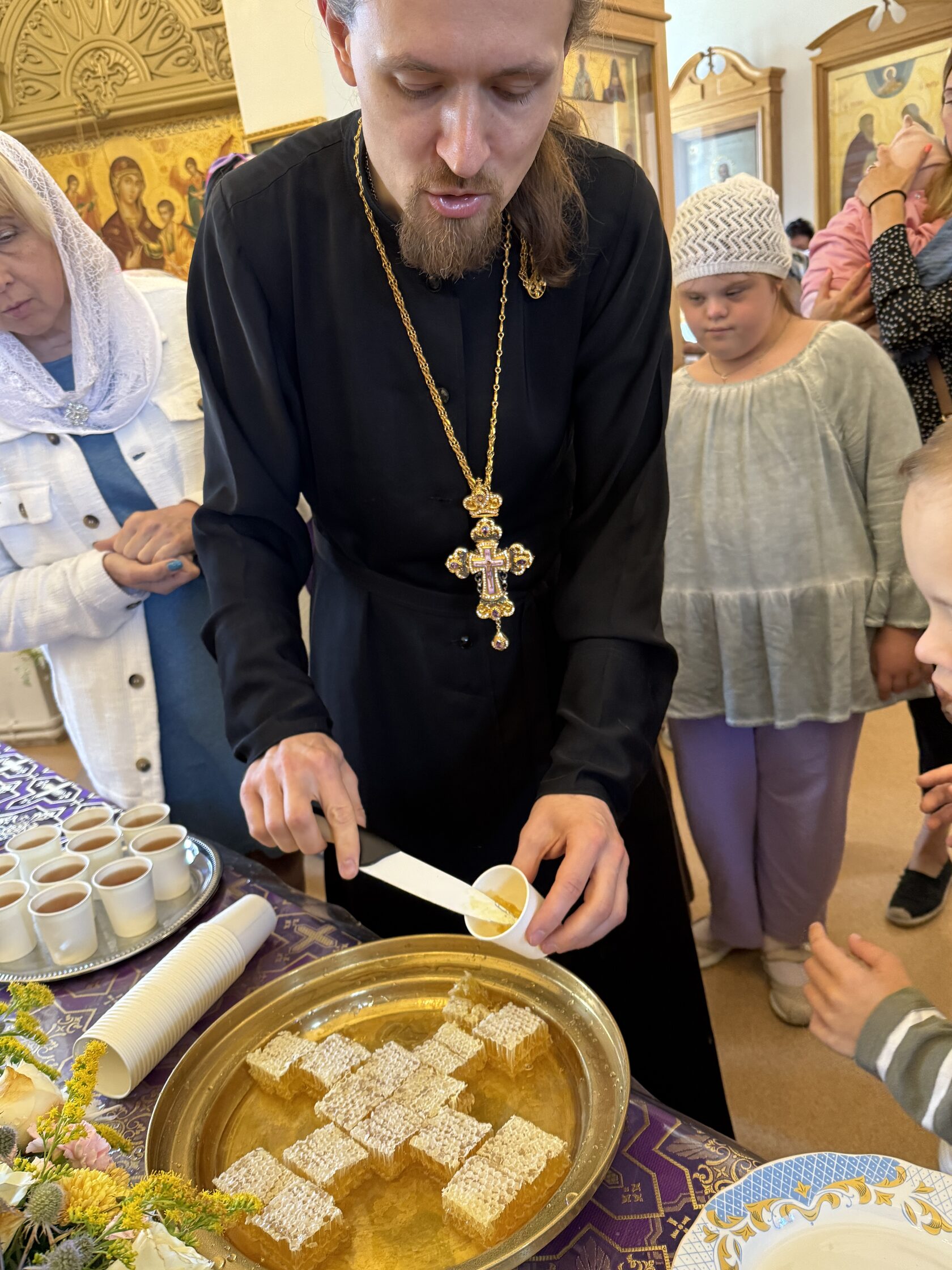 14 августа 2025 года, в праздник Происхождения (изнесения) Честных Древ Животворящего Креста Господня, за Божественной литургией в Крестовоздвиженском храме г. Коломна вместе с прихожанами молились дети-инвалиды, проживающие в детском доме-интернате «Добрый дом «Коломенский». По окончании Богослужения и освящения мёда настоятель иерей Иоанн Бакушкин вручил гостям подарки, а также было организовано чаепитие.